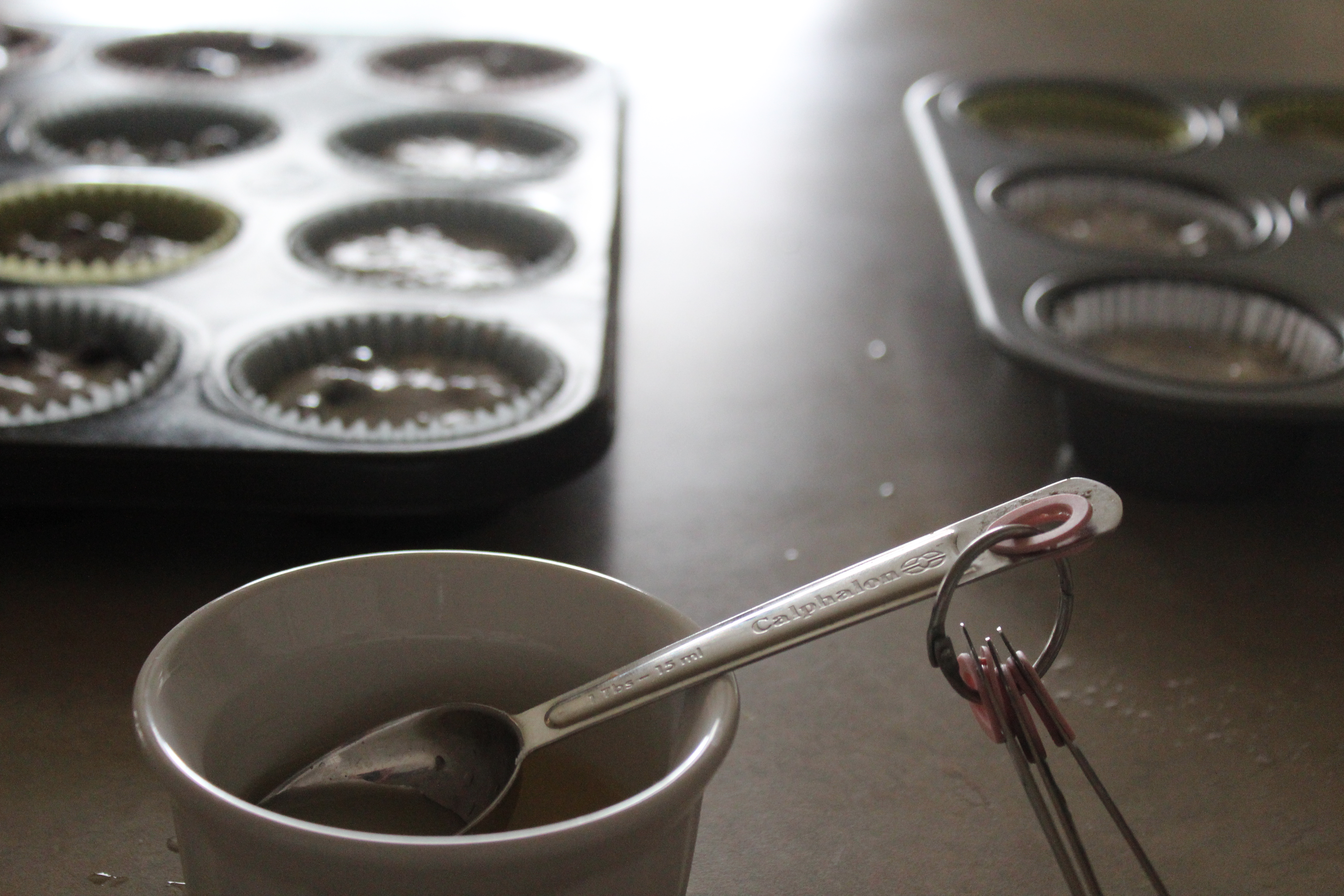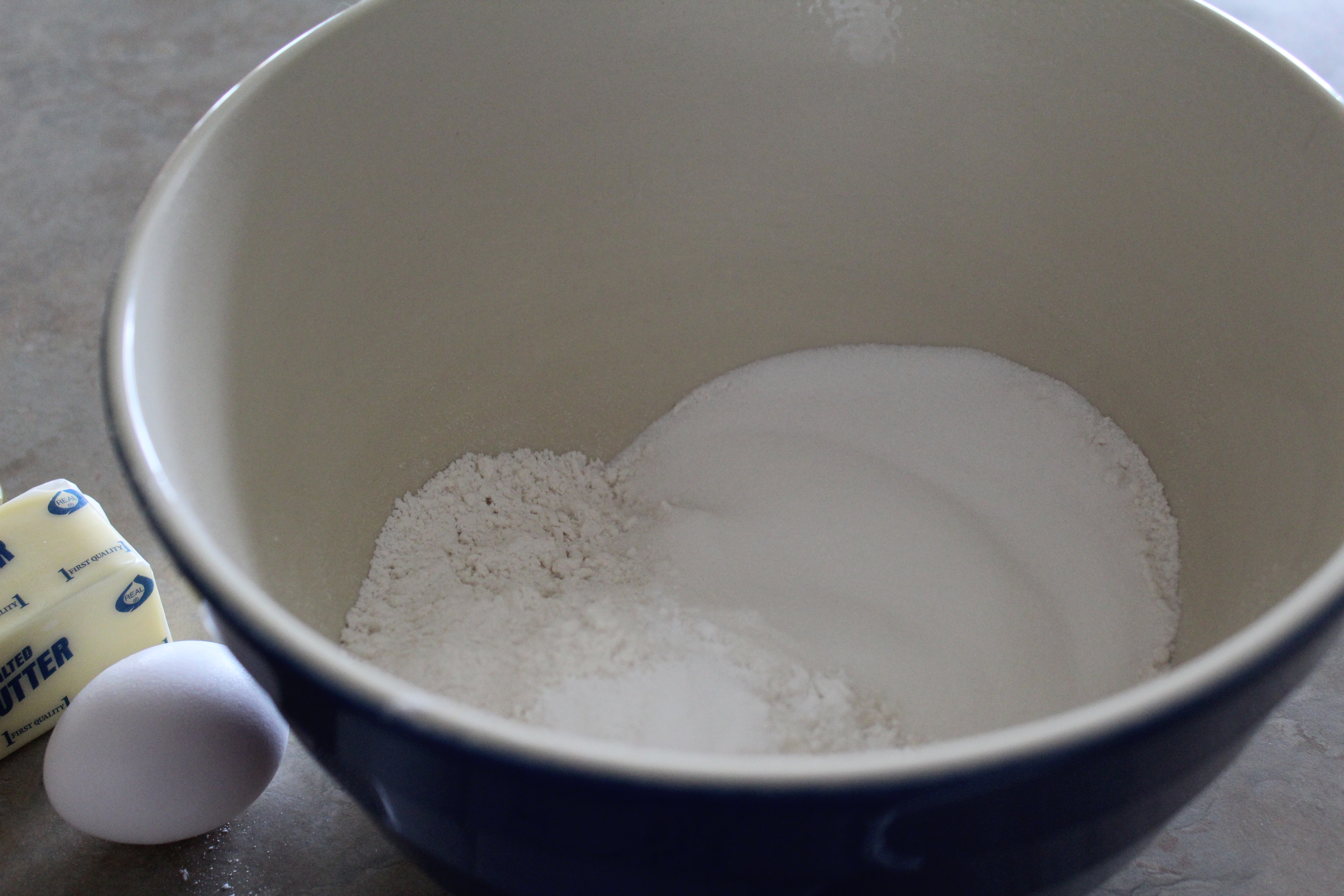 This is the normal mix-all-the-dry-ingredients-together-and-then-the-wet-ingredients-and-them-mix-the-two-together batter. Here’s the dry ingredients in a large bowl.