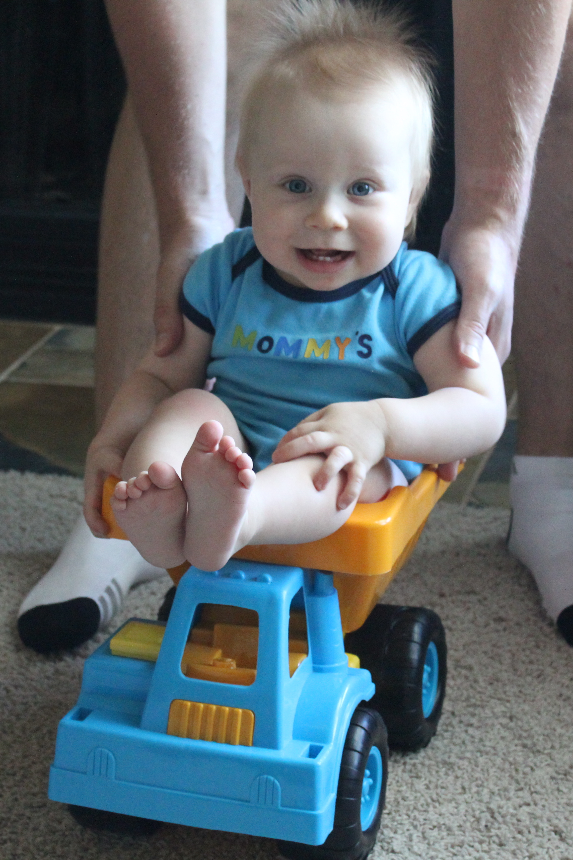 We’ve been anticipating this day for some time, and now it’s gone. My baby is moving from an infant into a toddler. And while I’m excited about it, it does make me a little sad. Pretty soon he’ll be going to school, and before you know it, he’ll be off and gone to college. And we certainly won’t be able to put him in a dump truck and ride him around the living room.