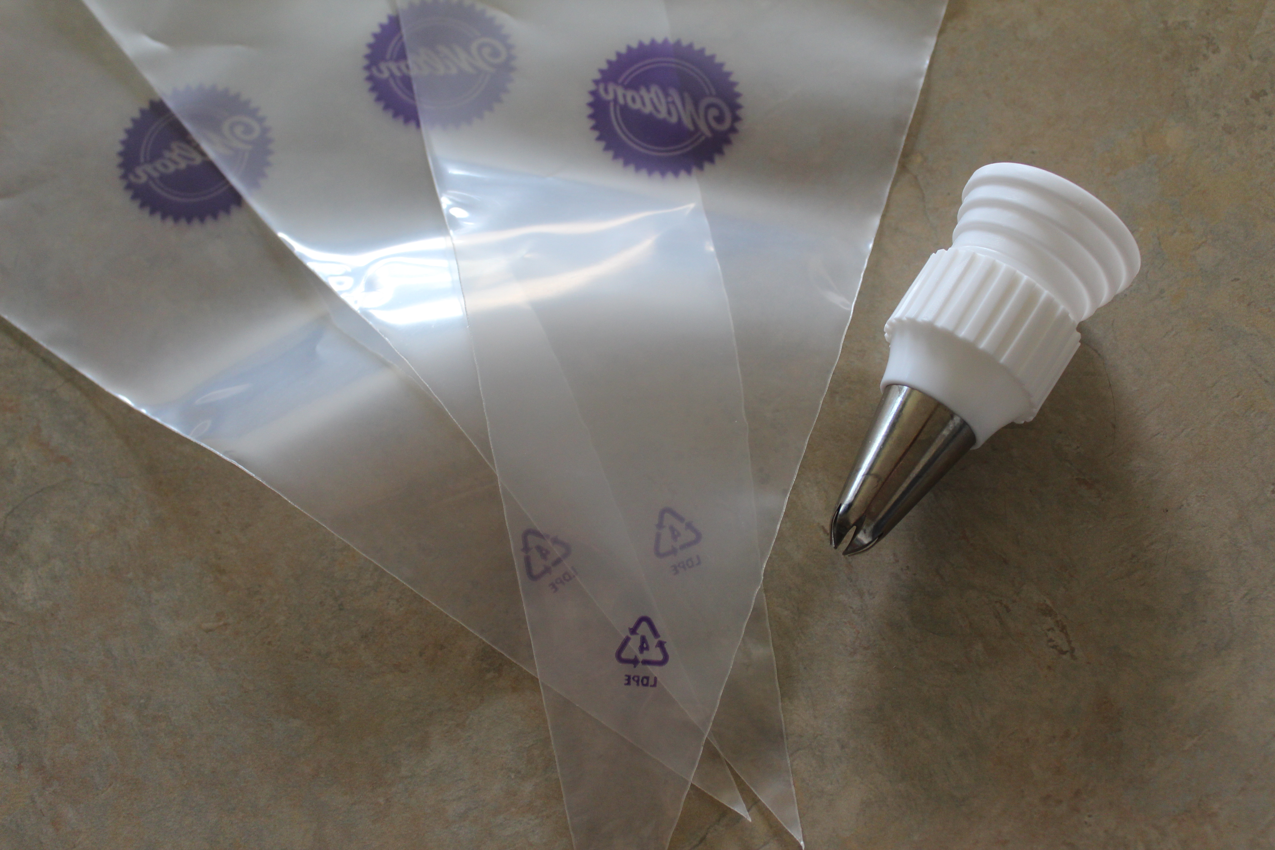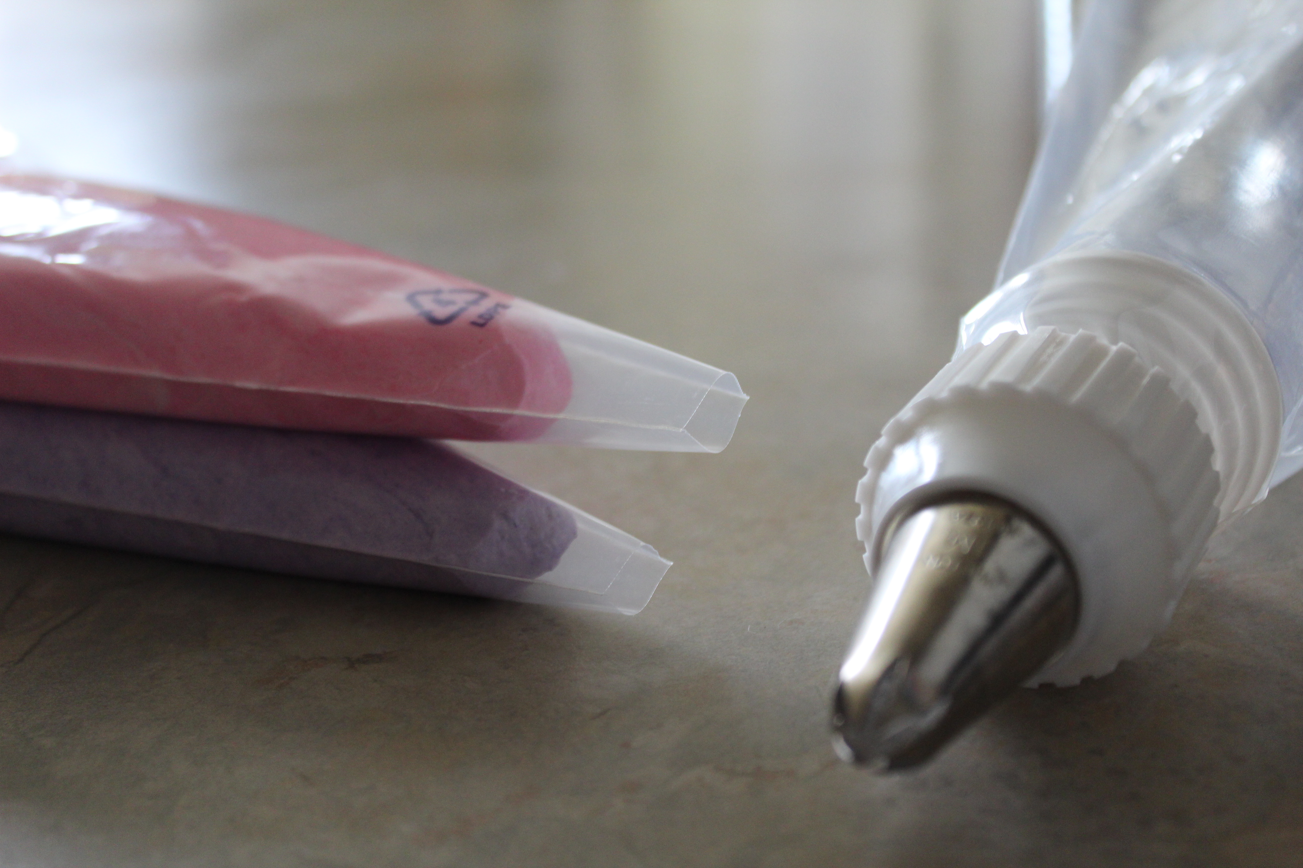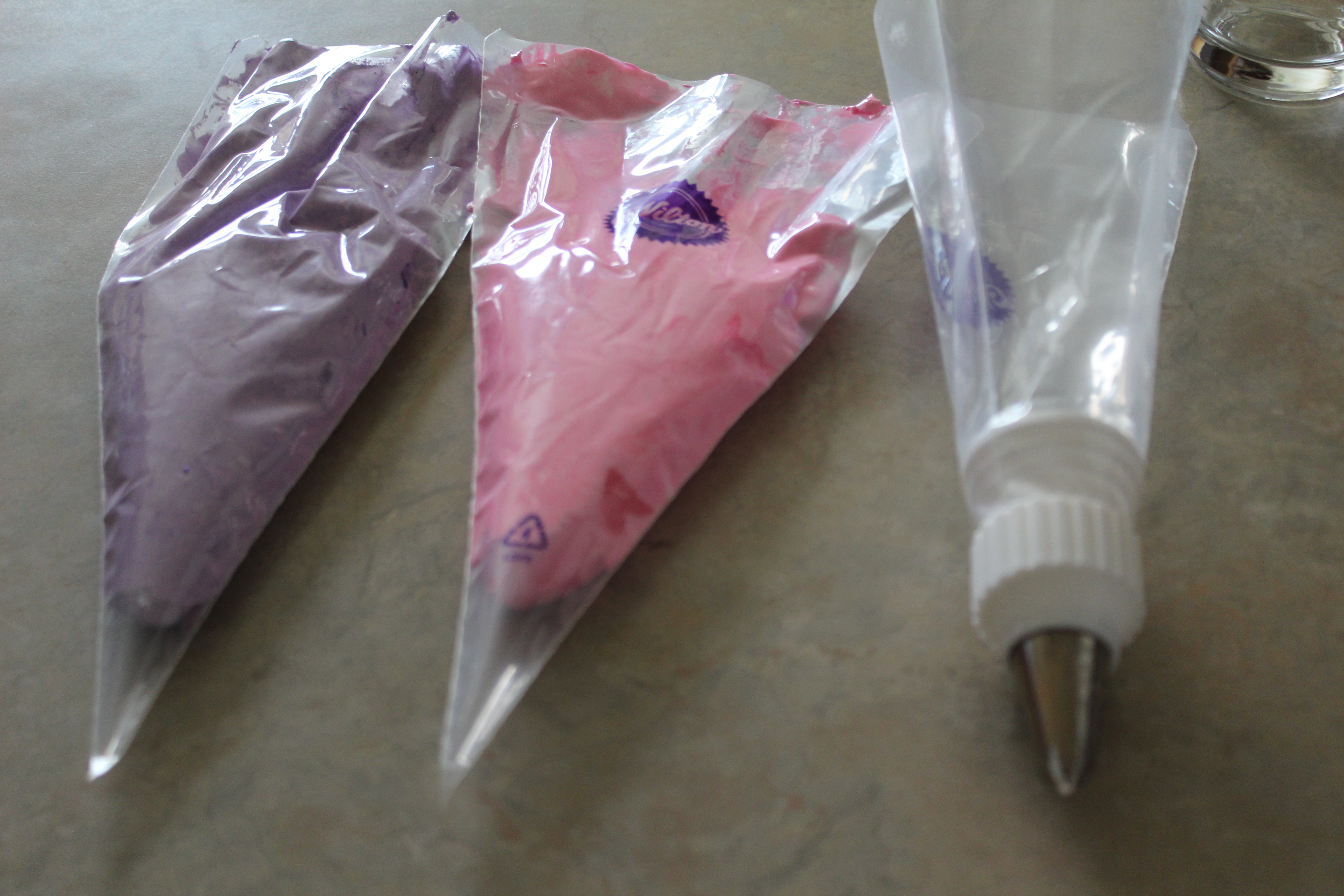 Instead of making her daughter choose pink or purple frosting, I decided to swirl them together. Our Best Bites had a great tutorial, and it was perfect for this girl’s big day. It’s really easy to make, and I don’t know why I hadn’t thought of it earlier! You need these things: