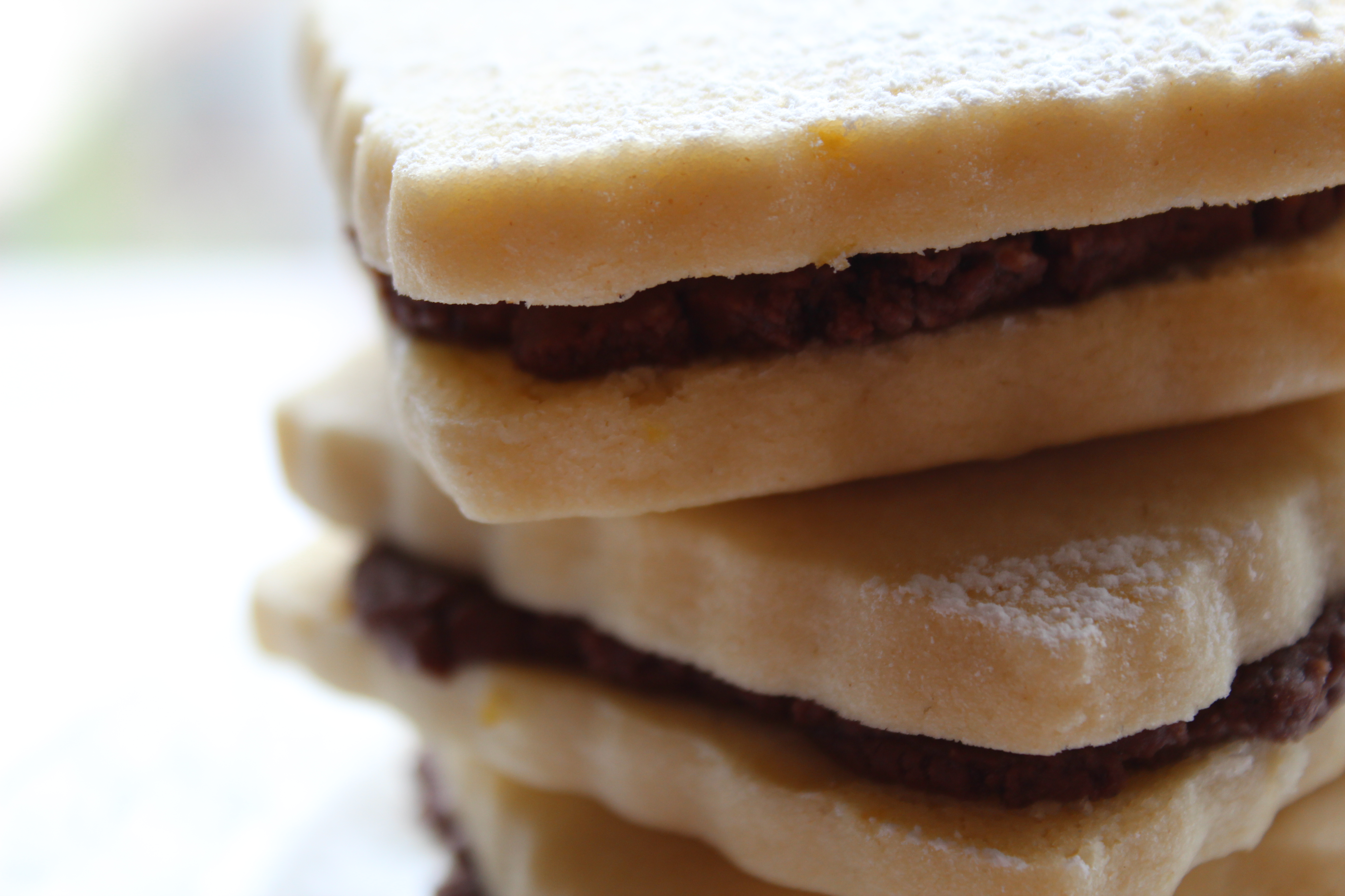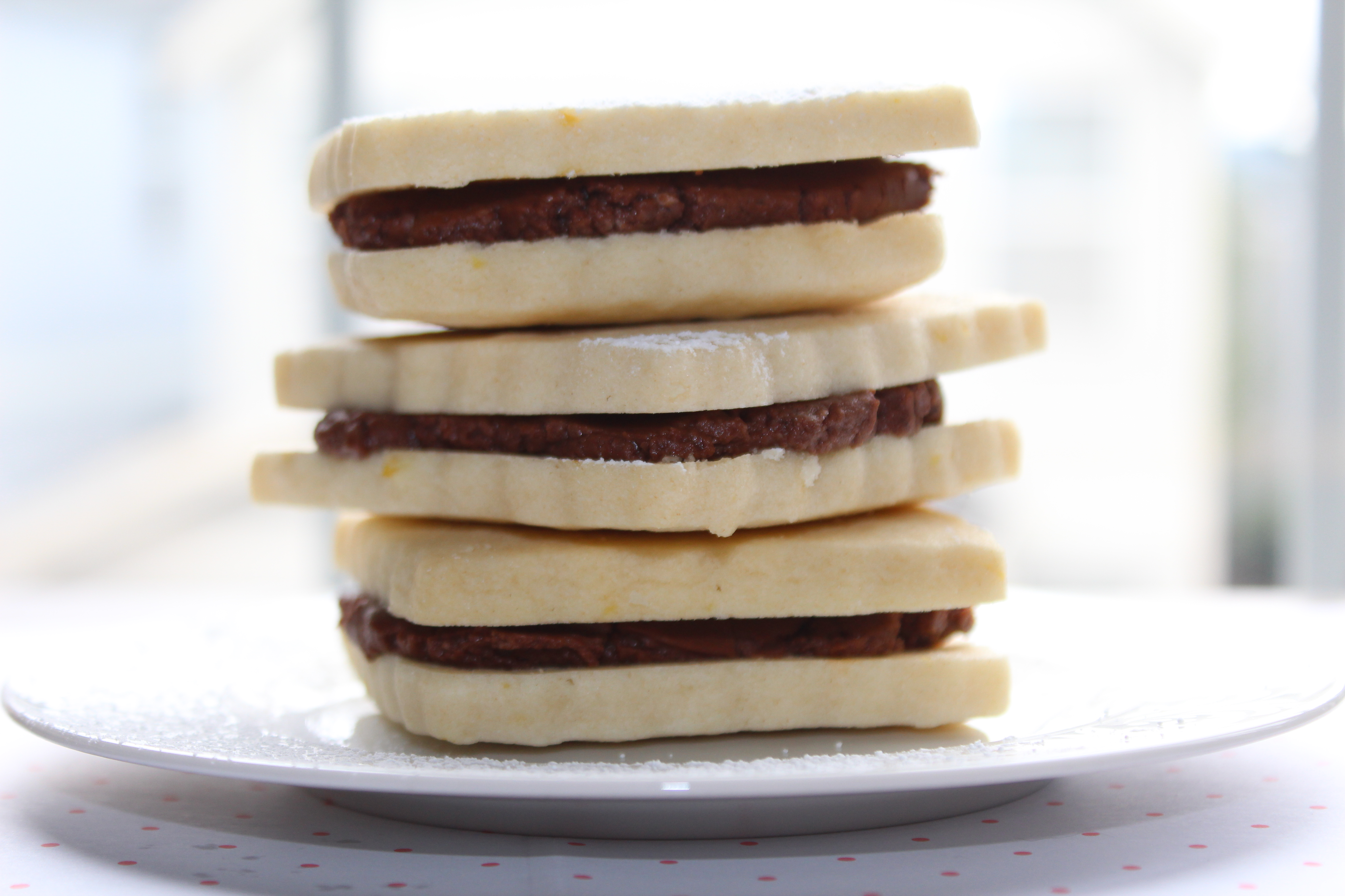 I have a problem. Maybe you have the same problem too. When I bake sugar cookies, to decorate them, I bake too many. And most of the time I don’t feel like decorating 30+ cookies. (Not only does my hand cramp at that point, but it takes up most of my afternoon.) Usually, I just leave the “leftovers,” and my husband and I munch on them. But I thought that turning them into little sandwiches cookies sounded like a fun idea and a good way to use these leftover cookies.
