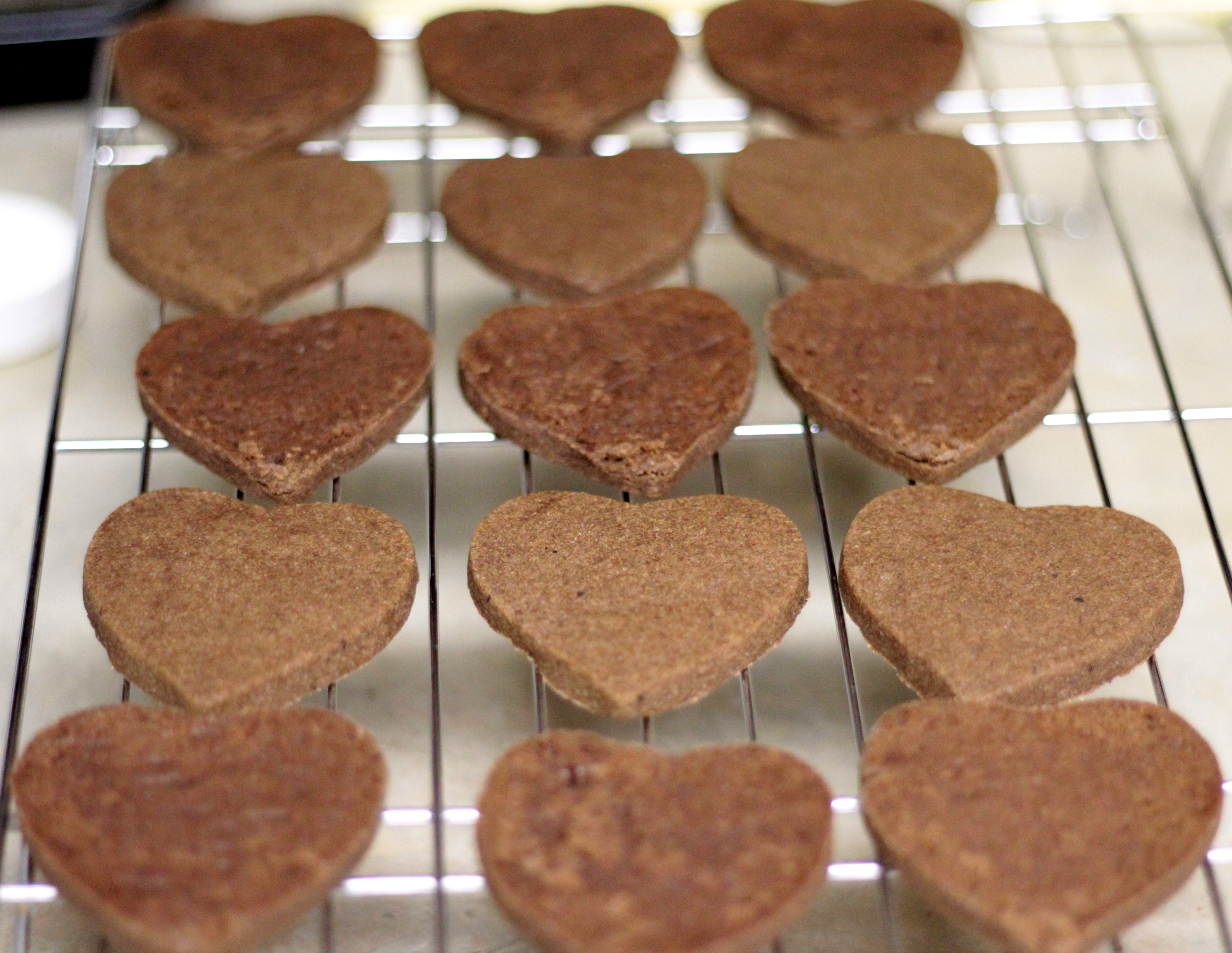 30 chocolate heart sugar cookies, baked and cooled