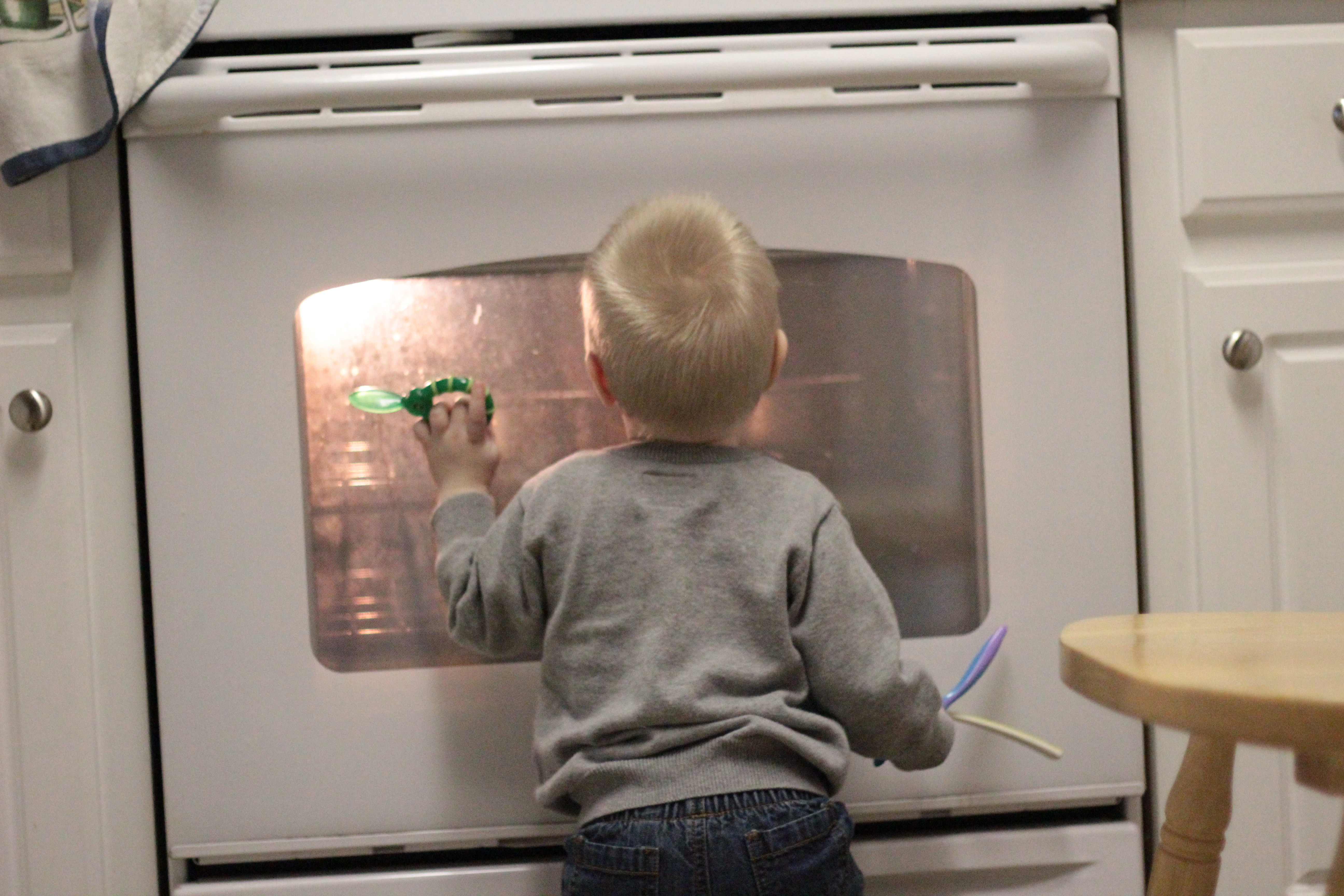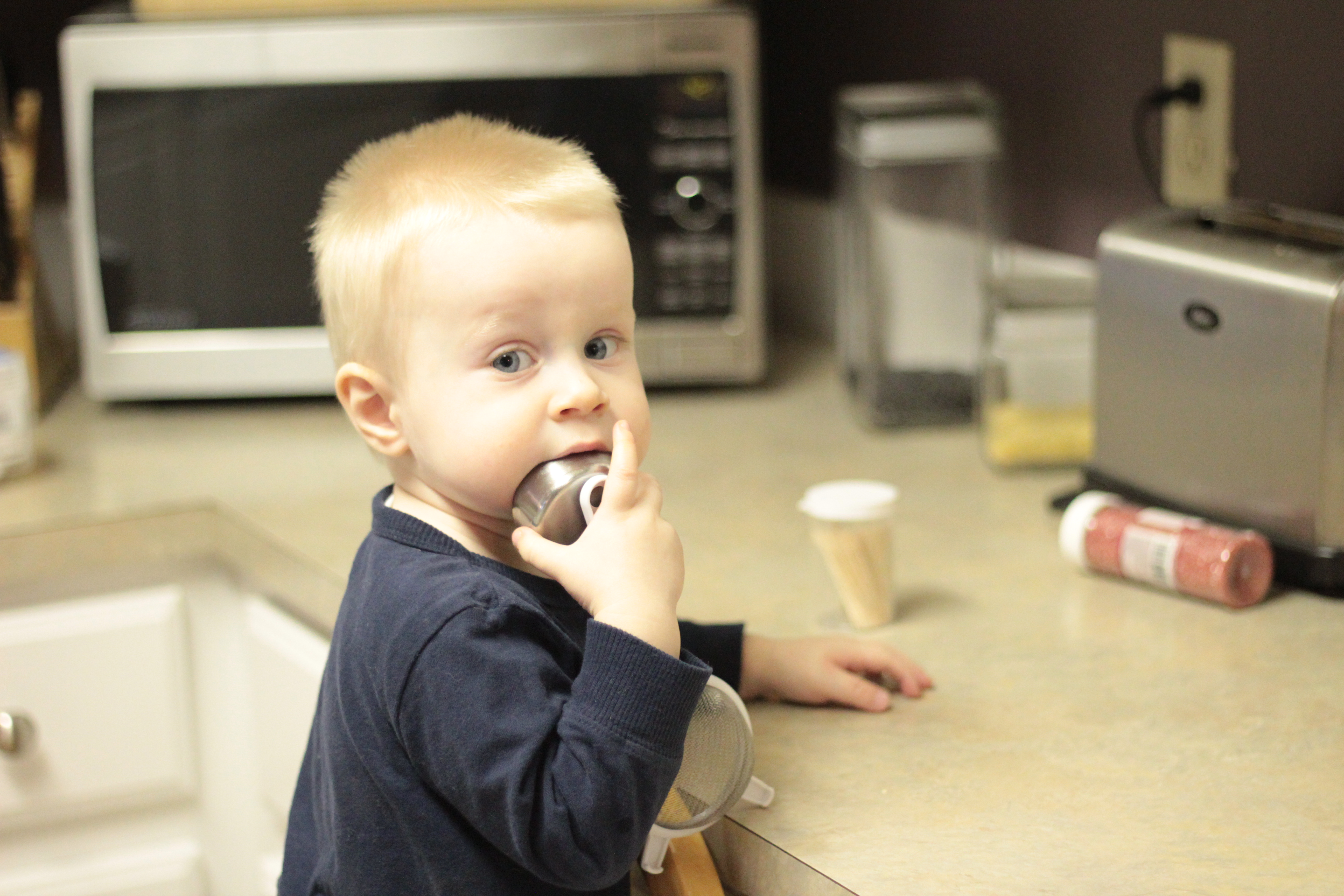I have a kitchen helper. Maybe you do too. My kitchen helper is my 18-month-old son Matthew. For about the last 4 months now, he’s been interested in what I’m doing in the kitchen, but can’t actually see what I’m doing–which is apparently very frustrating for toddlers. You know, to know that someone is doing something fun, but they aren’t a part of it.