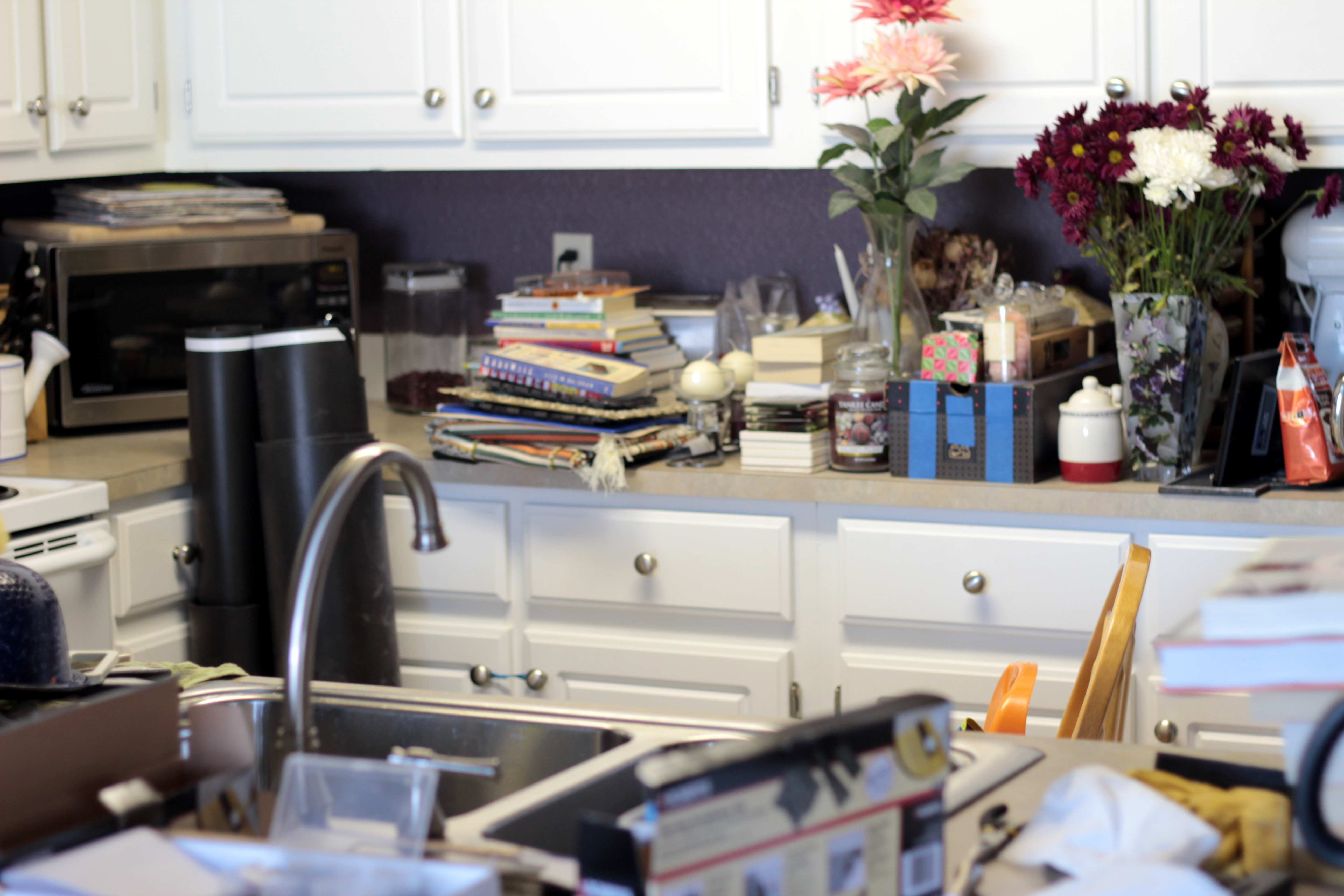 So in the two week process it took to put in hardwood for the main living areas, this is what my kitchen looked like. See what I mean by I couldn’t cook? I survived the first day, but by the third or forth day, I began to get really annoyed. I’d have to clear off a little space to cook and clean, only to put the “things” back on the counter.