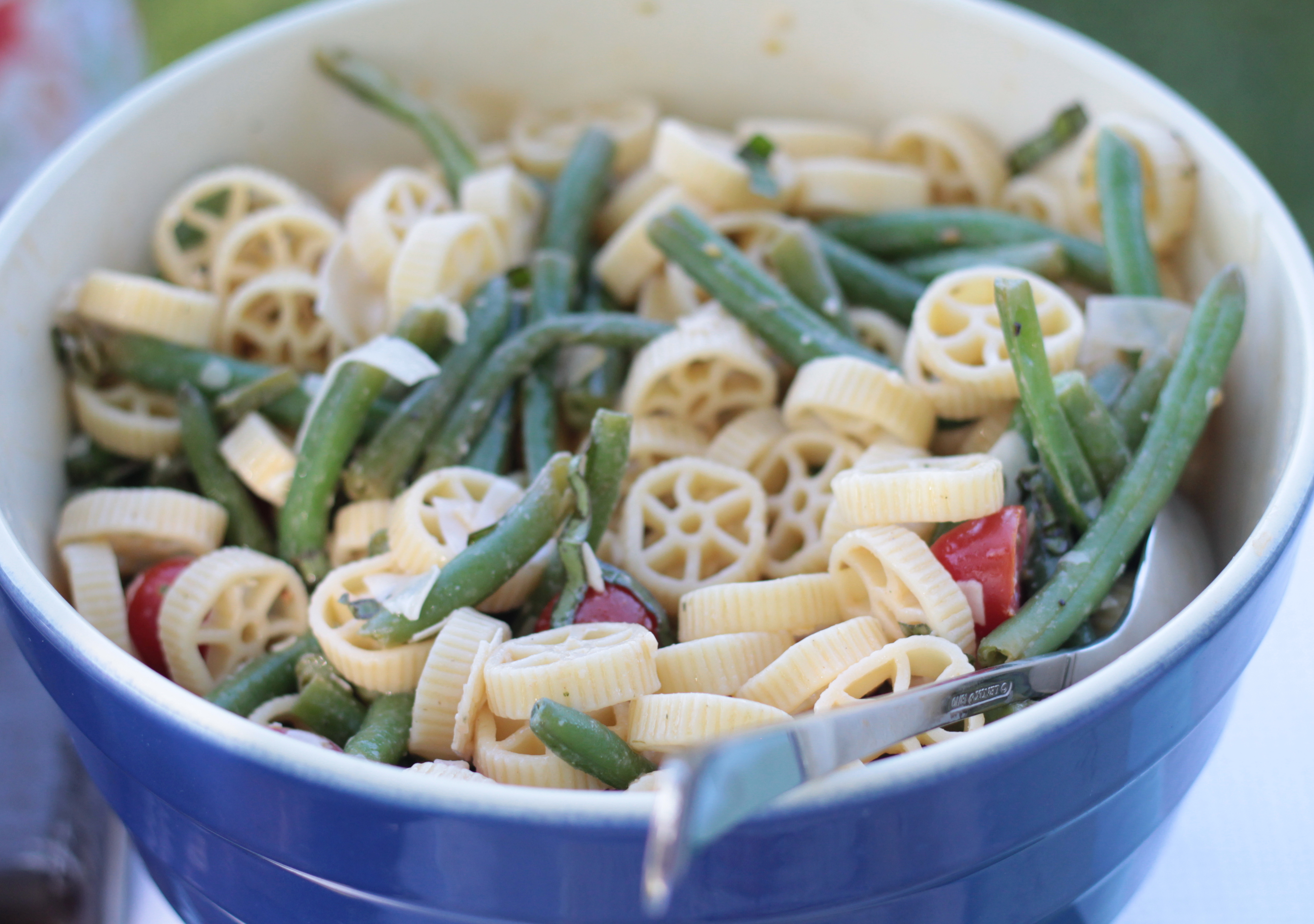 I bought a roll of thin foam at JoAnns, and then my husband drew a race track using permanent markers. For the pasta salad, the recipe comes from Cooks Illustrated. Since it’s copy-written and I didn’t make any alterations, I can’t share the recipe, but I will share the link. Good luck!